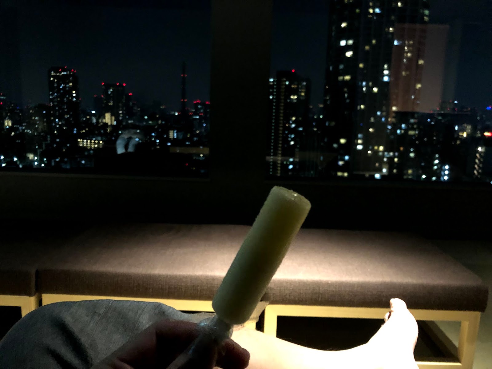 泡完後,外面還有個空間讓人靜靜的吃著冰棒,看夜景。沒吃到肉棒,那就多吃幾根冰棒吧!